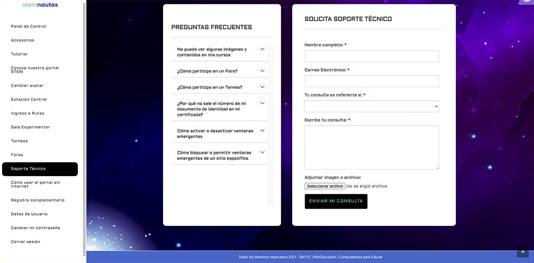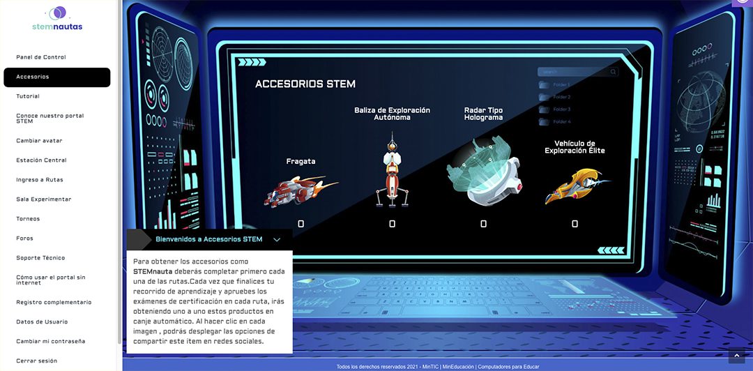 Portal educativo desarrollado por outsourcing, con impacto nacional en Colombia. Capacita virtualmente a estudiantes, docentes y padres de familia en conocimientos STEM: Ciencia, Tecnología, Ingeniería y Matemáticas.
